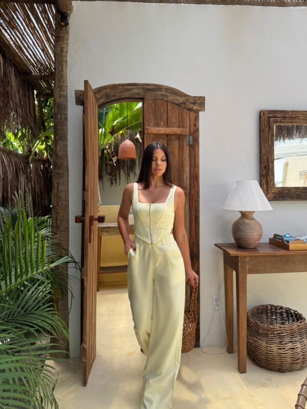 Leve, elegante e com aquele mood de verão sem esforço. O amarelo suave ilumina o look, enquanto a modelagem valoriza a silhueta e garante movimento natural. Um conjunto pensado para dias quentes, encontros ao ar livre e momentos que pedem frescor com sofisticação.