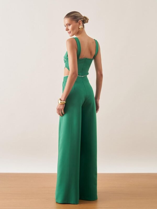 Macacão Trinity longo em alfaiataria Barbie. Com recortes e estruturas que modelam a silhueta feminina. Feito para mulheres modernas e contemporâneas.