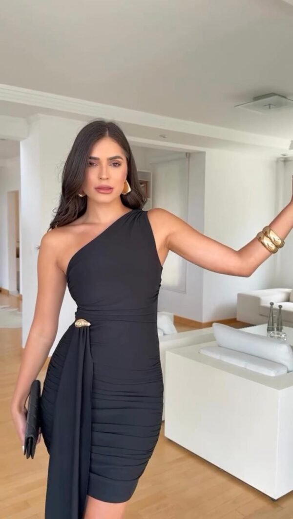 O vestido Luiza é feita para mulheres que não tem medo de ser ousada. Com recortes e estruturas que valorizam o corpo feminino com aquele toque de classe e sensualidade na medida certa. Na parte do busto o vestido Lolly acompanha bojo com com uma alça de um ombro só. Na parte da frente do vestido contem uma faixa com aviamento gota dourado.
